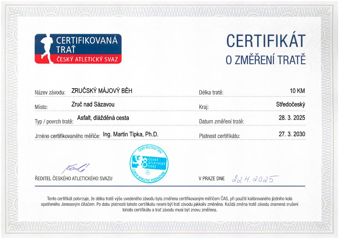 Zručský májový běh má 4 okruhy rozlišené barvami. Všechny jsou značeny směrovkami ve stejných barvách kromě modré (světlé) krátké trasy, která měří 150 m a je určena pro nejmenší děti ve věku od 0 do 5 let. Děti ve věku 6 a 7 let běží podobnou trasu (tmavě modrou), která je prodloužená na 300 m. Zelený okruh má délku 600 m. Na něm běží děti ve věku od 8 do 11 let a štafetové týmy. Pokud chcete běžet po žlutém okruhu, musíte uběhnout 1100 m a být ve věku od 12 do 15 let. Všechny okruhy jsou umístěny v zámeckém parku. Červený okruh samozřejmě vybíhá i mimo park, je určen pro dospělé, měří 10 km a je to certifikovaná trať dle ČAS. Kdo se necítí na hlavní běh, může běžet zkrácenou formu tohoto okruhu (růžového), a to 3 km. Ten je určen pro Lidový běh.